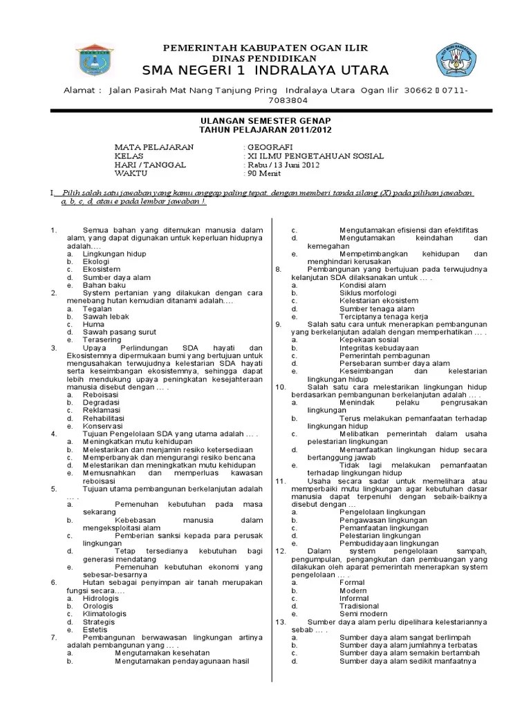 Soal Ulangan Geografi Kelas 11 Bab 1 : Contoh Soal Ukk Pat Geografi Kelas 11 Sma Ma Sekolahmuonline Com Part 1 Sekolahmuonline / Sampdf kunci jawaban pr intan pariwara kimia 11 bab 1 makasih yang udah nonton hehehe.. Faktor luasnya lahan yang tersedia Ilmu pengetahuan sosial paket : 45 contoh soal essay geografi peminatan kelas xi semester 1 k13 beserta. Contoh soal pg geografi peminatan kelas xi semester 1 k13 beserta. Sampdf kunci jawaban pr intan pariwara kimia 11 bab 1 makasih yang udah nonton hehehe.
